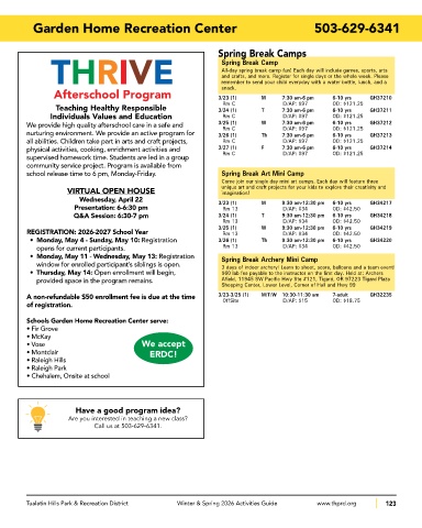 Tualatin Hills Park & Recreation District Winter & Spring 2026 Activities Guide www.thprd.org 123