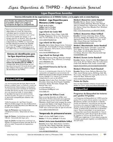 www.thprd.org Guía de Actividades de Invierno y Primavera 2026 Tualatin Hills Park & Recreation District 151