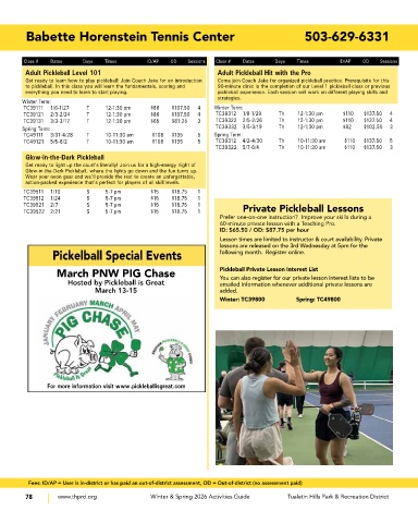 TC39521 2/7 S 5-7 pm $15 $18.75 1 Private Pickleball Lessons