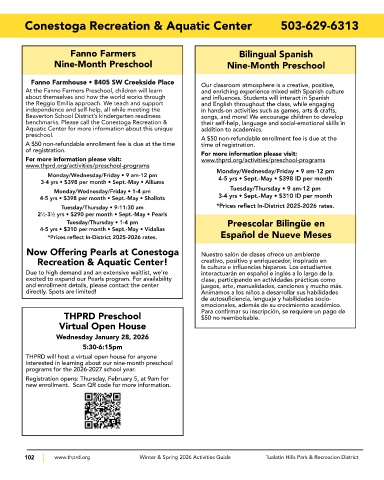 102 www.thprd.org Winter & Spring 2026 Activities Guide Tualatin Hills Park & Recreation District