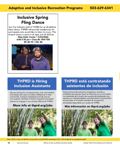 10 www.thprd.org Winter & Spring 2026 Activities Guide Tualatin Hills Park & Recreation District