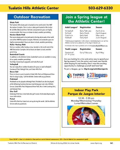 Tualatin Hills Park & Recreation District Winter & Spring 2026 Activities Guide www.thprd.org 141