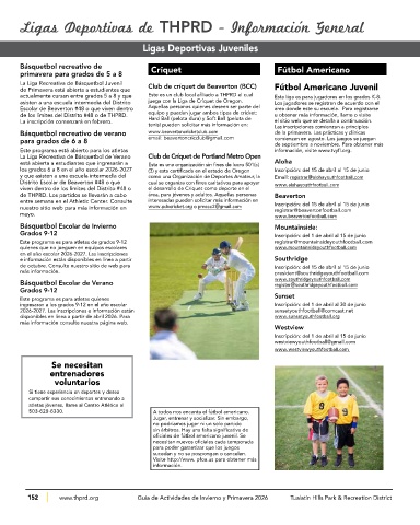 152 www.thprd.org Guía de Actividades de Invierno y Primavera 2026 Tualatin Hills Park & Recreation District